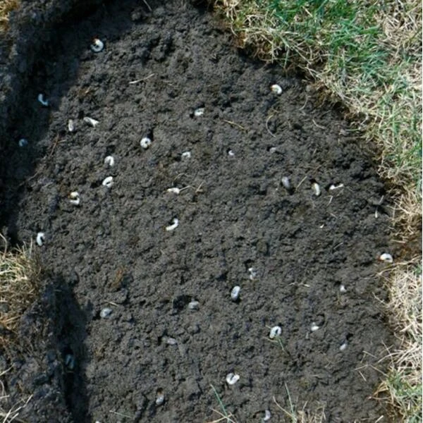 DCM Heteri-Guard, aaltjes om engerlingen in gazon te bestrijden. Deze microscopisch kleine wormpjes leven van engerlingen en vermenigvuldigen zich tot er zich geen meer in het gazon bevinden.